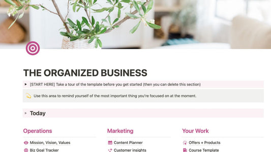 START ORGANIZINGStop searching for important things in screenshots, sticky notes and old emails. This ADHD-Friendly Notion dashboard saved my business - no joke.
